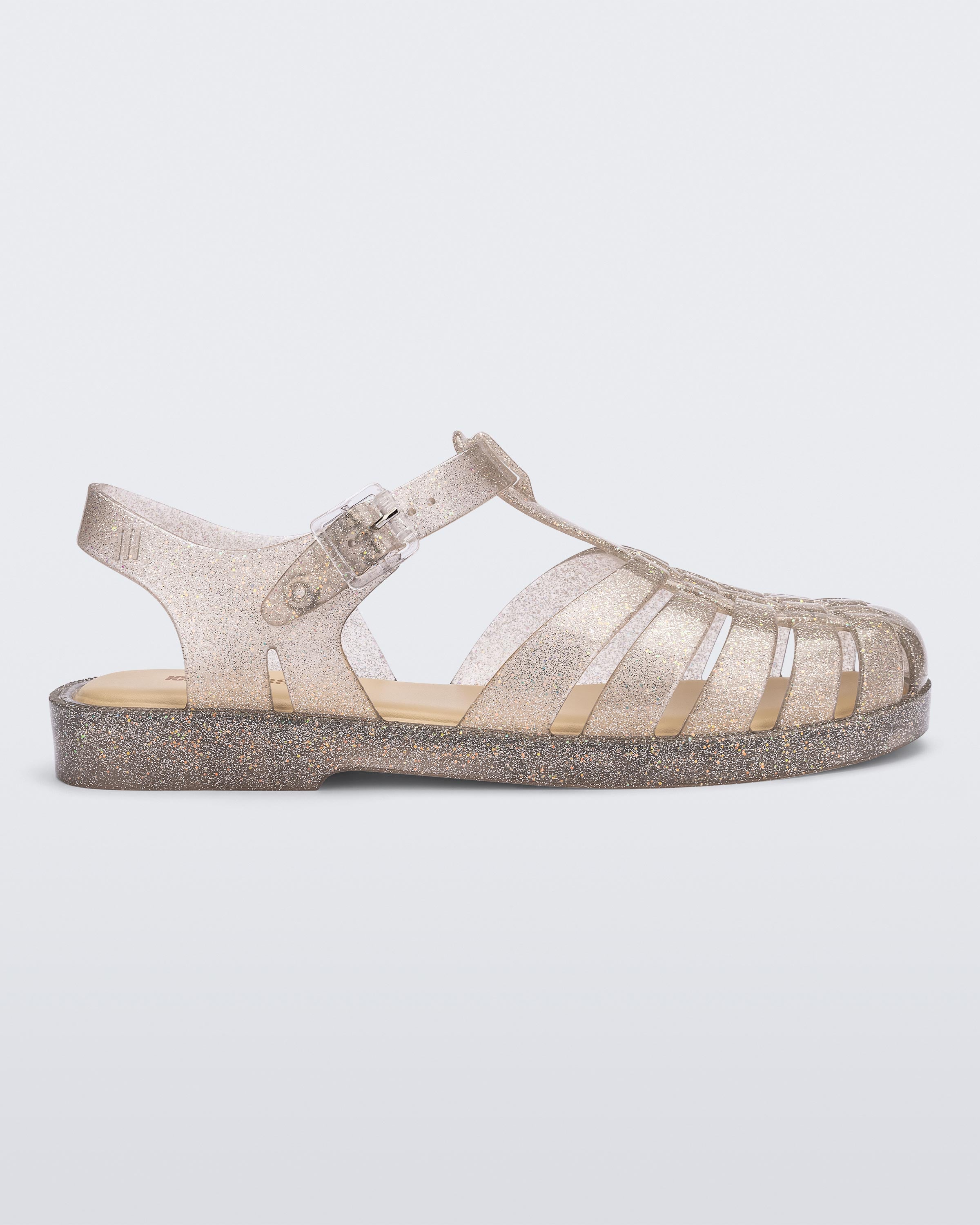 ¡Va a apoderarse de tus pensamientos! La Melissa Possession Shiny es un modelo que no podrás sacar de tu cabeza, especialmente en su nueva versión con efecto glitter, perfecta para acompañar tu energía de fin de año. Un clásico de los años 90, esta sandalia es la combinación ideal de comodidad y estilo. Disponible en tallas desde bebé hasta adulto.